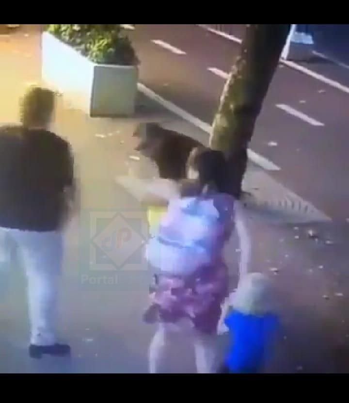 A mulher passa pela criança, tira a faca da bolsa e ataca o menino, em primeiro momento, a mãe não entende o que aconteceu e após notar que a mulher está descontrolada e tenta atacar a menina, o pai interfere e puxa a criança.