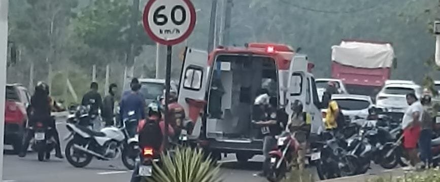 Um carro colidiu com uma moto nesta sexta-feira , 3, na Avenida das Torres, zona Sul de Manaus.