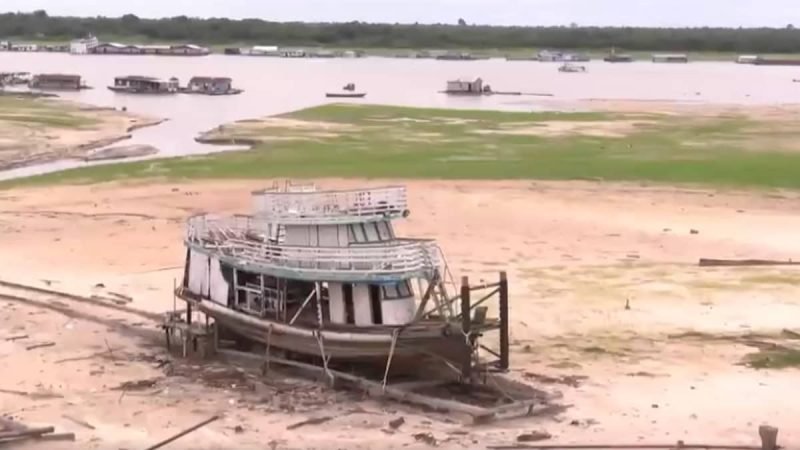 De acordo com o governo do Amazonas, essa deve ser a pior seca da história. Nesta época do ano, é comum ocorrer a queda no nível dos rios até a chegada da temporada das chuvas, a partir de novembro.