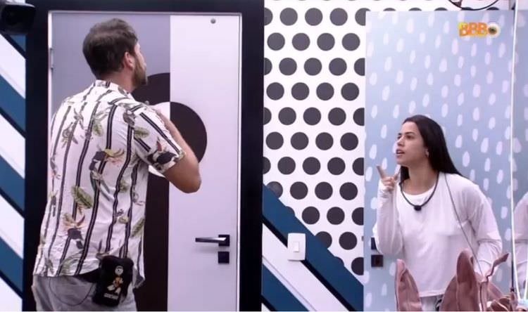 Larissa foi atrás dele e ambos bateram boca. “Meu amor, se a carapuça serviu, não posso fazer nada”. “Carapuça, Larissa? Eu peguei você falando de mim na cara”, rebateu ele.