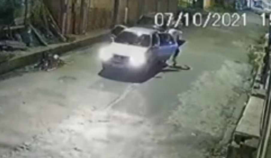No vídeo, é possível observar os assaltantes que estavam em um veículo da cor prata, ultrapassando um carro da cor preta, que tinha uma condutora e uma passageira.