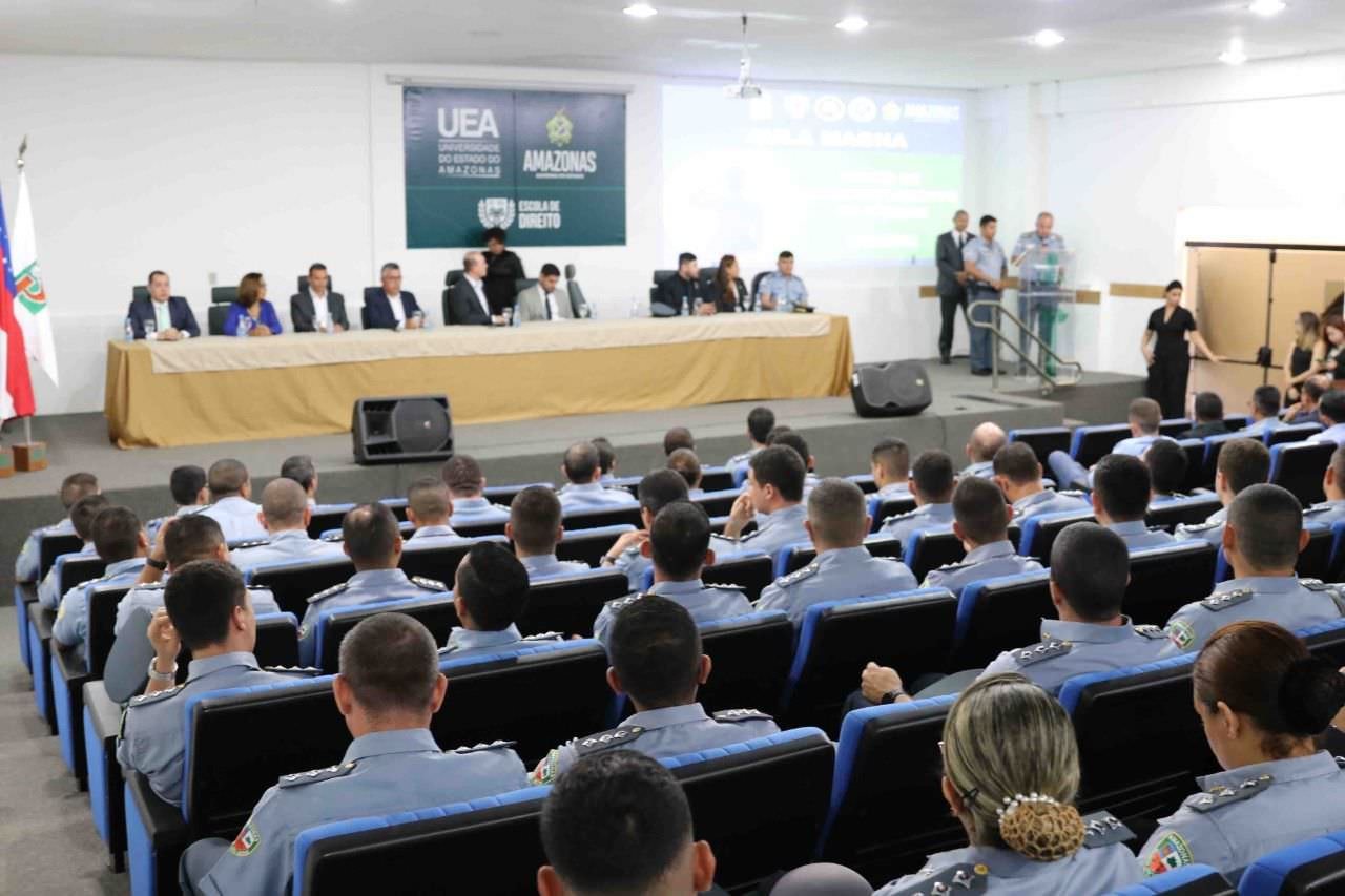 O evento aconteceu no Auditório da Escola de Direito da UEA, no Centro de Manaus. Além da UEA, o curso é realizado pela SSP-AM por meio do Instituto Integrado de Ensino de Segurança Pública (IESP).