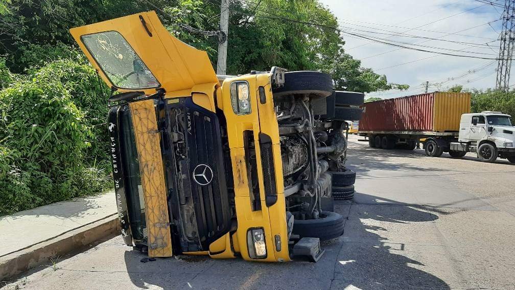 Uma carreta tombou na manhã deste sábado (11), na Bola da Suframa (Superintendência da Zona Franca de Manaus), próximo ao Centro Cultural Povos da Amazônia. O vídeo do acidente foi encaminhado por leitores do Portal Tucumã.
