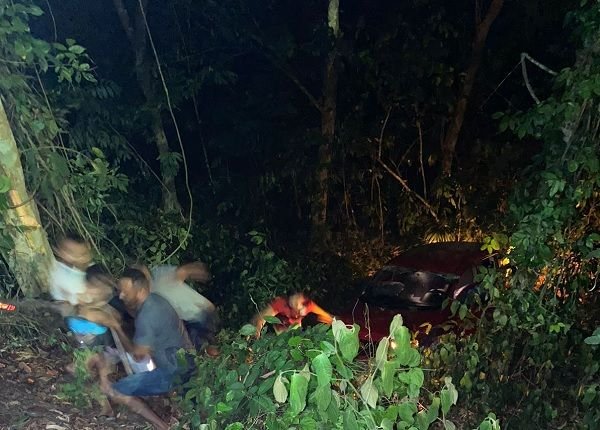 Um carro que estava na Avenida São Jorge, zona Oeste de Manaus, indo em direção a Avenida Jacira Reis, caiu em ladeira, todos foram resgatados com vida e passam bem.