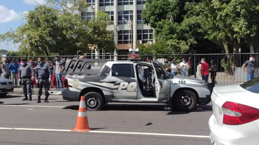 Um veículo da Polícia Militar foi alvejado por tiros de fuzil enquanto transportava três detentos para uma audiência de custódia, em plena avenida Paraíba, no bairro de São Francisco, em Manaus, na tarde de hoje. Dois dos presos acabaram mortos e uma policial civil foi baleada. A Polícia Civil trabalha com a hipótese de acerto de contas entre facções rivais.