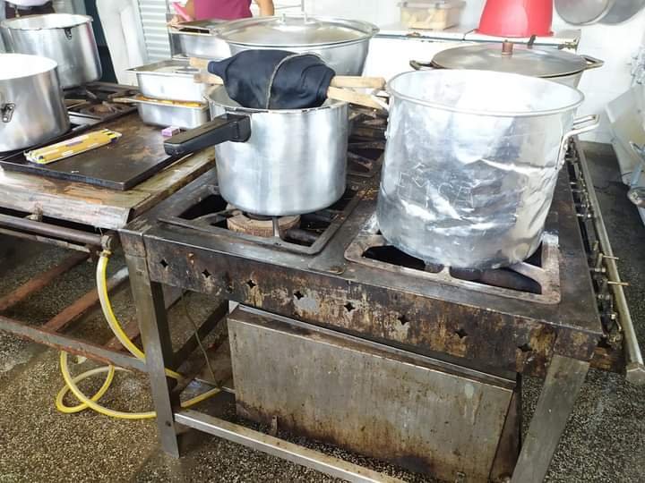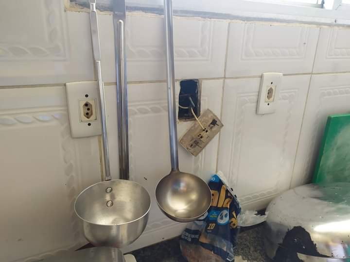 Na cozinha do hospital, o prefeito disse que conversou e vi os profissionais daquela área trabalhando no calor, sem exaustores para higienização do ambiente, botijas de gás inadequadas e mal acondicionadas.