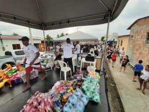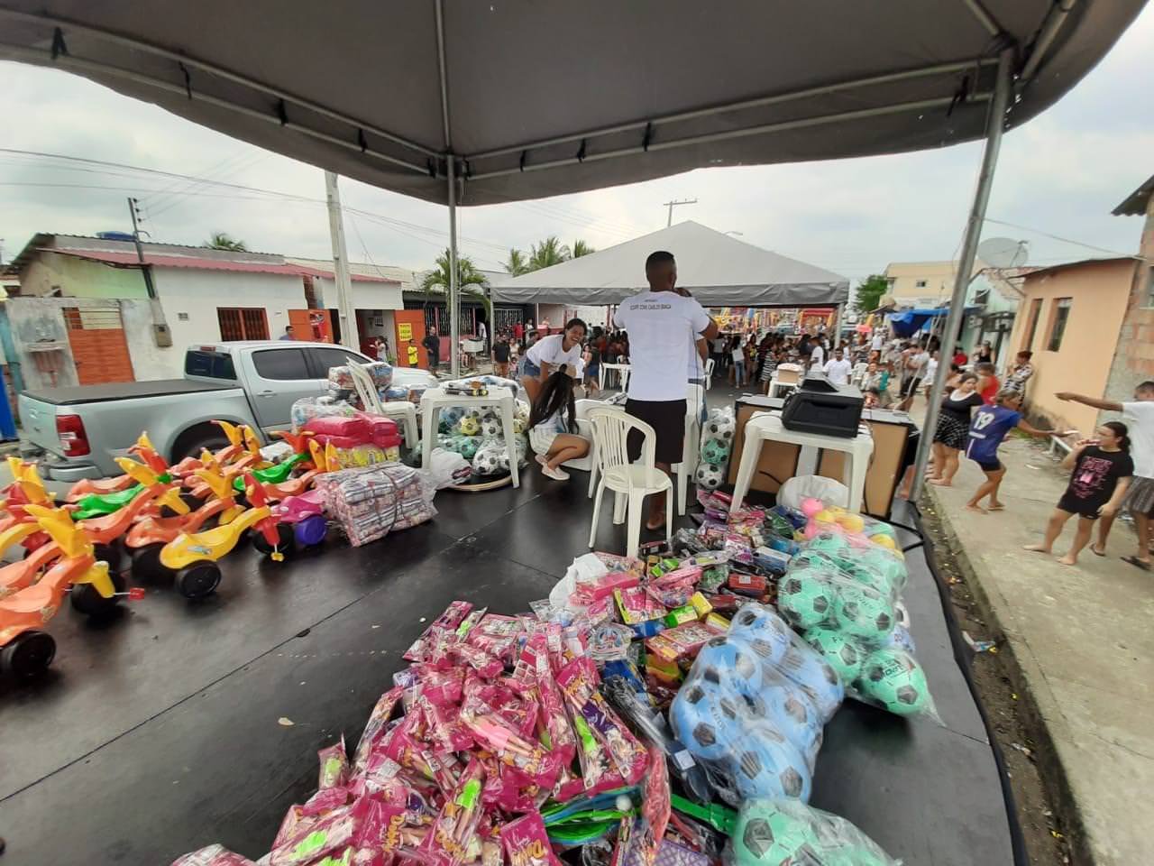 Em comemoração ao Dia das Crianças, foi realizado no conjunto Carlos Braga, Zona Norte de Manaus, neste sábado (12), uma grande festa com distribuição de brinquedos e lanches para as crianças da comunidade.