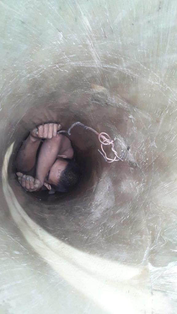 Após ser encontrado, o Corpo de Bombeiros Militar do Amazonas (CBMAM) foi acionado para resgate. O corpo do homem estava a pelo menos dois metros de profundidade dentro do poste que estava no terreno.