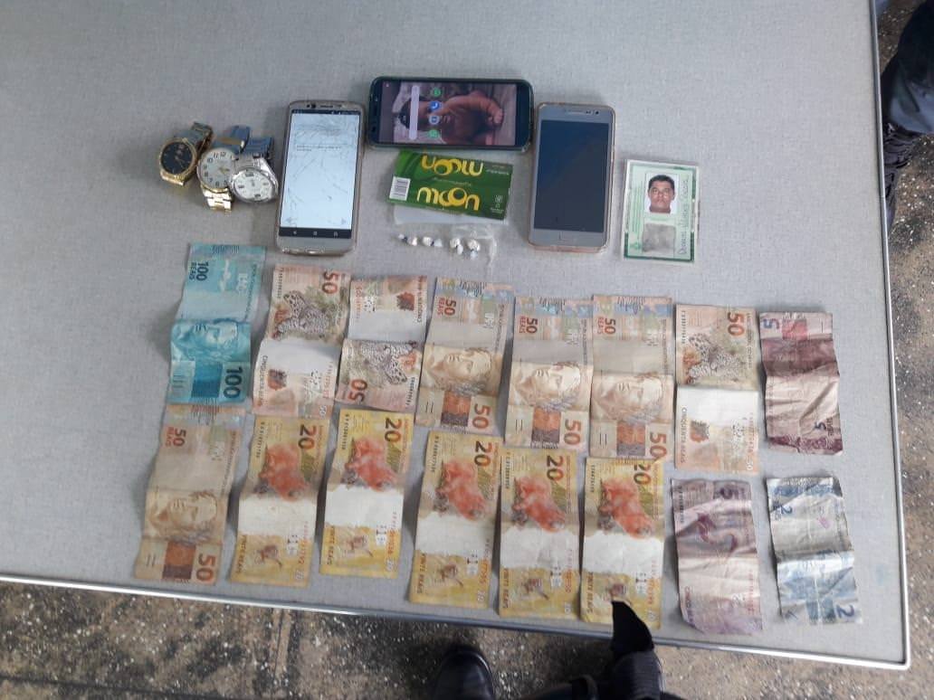 No município de Borba, um homem foi preso por tráfico de entorpecentes. Policiais receberam a denúncia de que no bairro Nova Esperança suspeitos estavam fazendo a comercialização de entorpecentes e um destes era foragido da Justiça. Foi apurada a informação e constatado que Douglas Vilhena Passos, 30, tinha um mandado de prisão em aberto. Ele estava em posse de quatro pedras de oxi, três relógios, três aparelhos celulares e R$ 562.