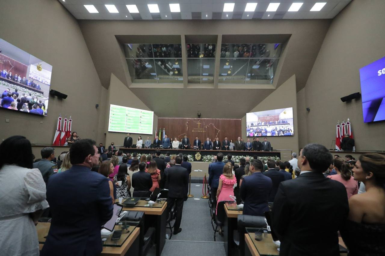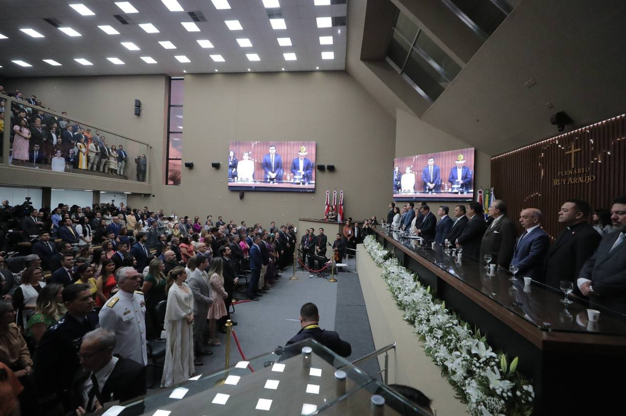 A posse dos deputados estaduais, no Plenário Ruy Araújo, foi presidida pelo parlamentar decano da Casa, o deputado Adjuto Afonso (União Brasil). Dos 24 empossados, dez são novos ocupantes das cadeiras do legislativo estadual e 14 foram reconduzidos ao cargo.
