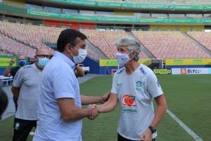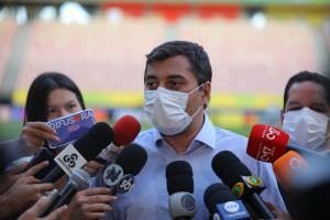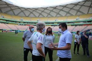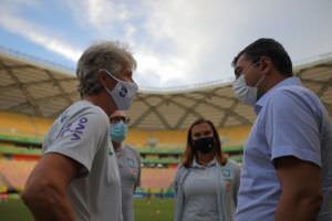 “A Arena da Amazônia, como vocês sabem, passou por uma preparação, por uma reforma aqui do gramado e também da iluminação pública. E, com isso, fez com que o estado do Amazonas fosse credenciado para a realização de grandes eventos, levando em consideração a diminuição dos casos de Covid, a diminuição no número de internações”, disse o governador.