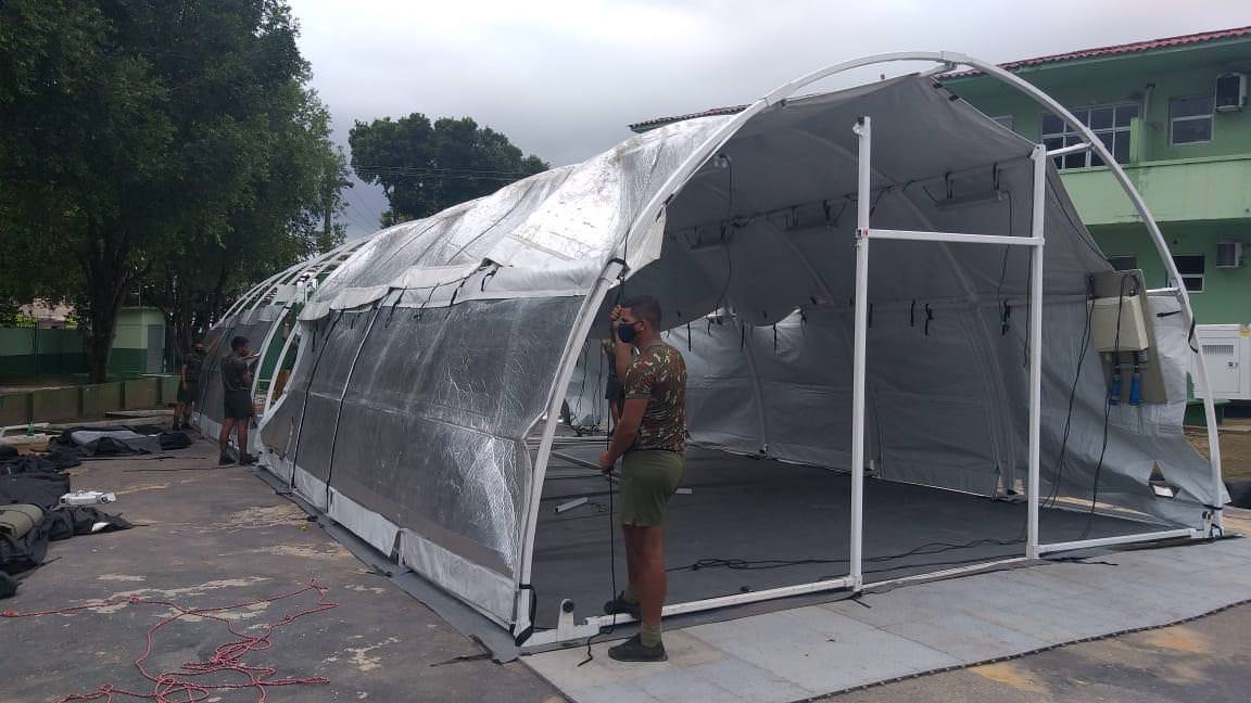 Nesta sexta-feira (8), a 12ª Região Militar com apoio de todas as OMDS (organização militares diretamente subordinadas) mobiliou um hospital de campanha vindo do Rio de Janeiro e instalado no Hospital Militar do Amazonas (HMAM).