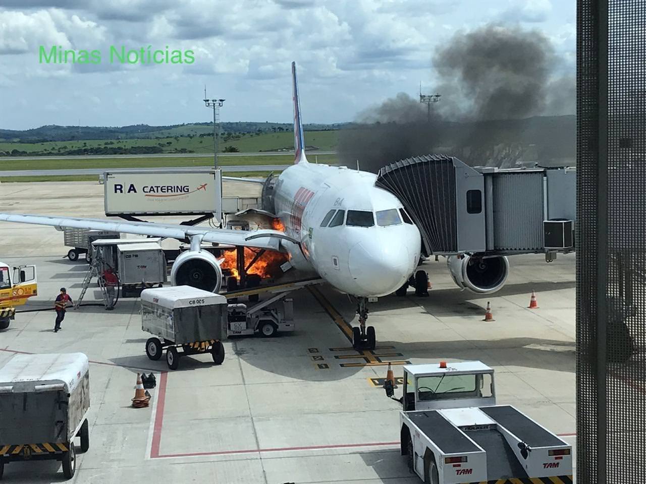 Segundo a Latam, não houve chamas na aeronave. Concessionária BH Airport afirma que passageiros foram retirados em segurança.