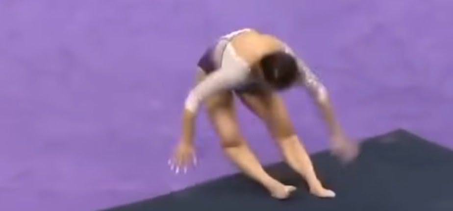 Uma cena forte marcou a disputa do Campeonato Universitário de ginástica, o NCAA, nos Estados Unidos. Sam Cerio, da Universidade de Auburn, se apresentava no solo, quando errou um de seus saltos e quebrou as duas pernas. Foi levada às pressas para o hospital.