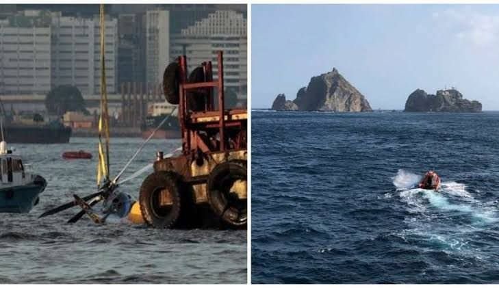 Sete sul-coreanos foram dados como desaparecidos depois que o helicóptero em que viajavam caiu em águas próximas às ilhotas Dodko, no mar do Japão, que Seul disputa com Tóquio, informaram hoje (1º) as autoridades locais.