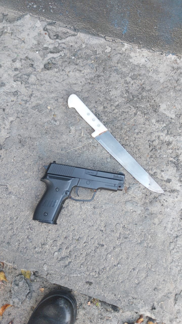 O suspeito portava um facão e arma de fogo.