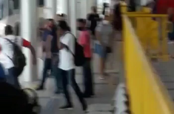 Segundo informações, um homem teria encontrado a mulher com o amante dentro do terminal, o que teria motivado a confusão.