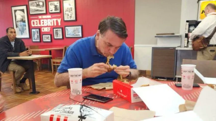 Uma foto do ex-presidente Jair Bolsonaro (PL) foi compartilhada no Twitter no sábado (31.dez.2022). Na imagem, Bolsonaro comia um frango na rede de fast food KFC, na Flórida (Estados Unidos). Ele viajou para Orlando no dia anterior com a mulher, Michelle Bolsonaro, e com a filha, Laura, 12 anos.