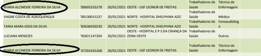 Na lista de vacinação contra a Covid-19 divulgada pela Prefeitura de Manaus foi constatado muitos nomes repetidos e diversos CPFs errado, isso é o que informou o vereador Amom (Podemos), em suas redes sociais.