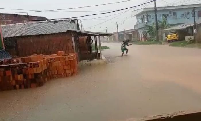 Um vídeo compartilhado na tarde desta quinta-feira, 21, mostra moradores de um bairro de Manaus pedindo ajuda para Defesa Civil, após a forte chuva que atingiu vários bairros da capital deixar um rastro de alagação.