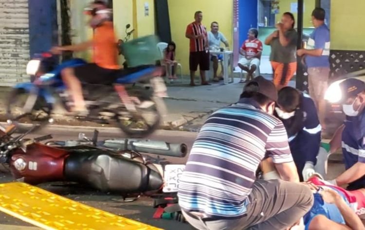 Motociclista quebra a perna em acidente violento em Manaus