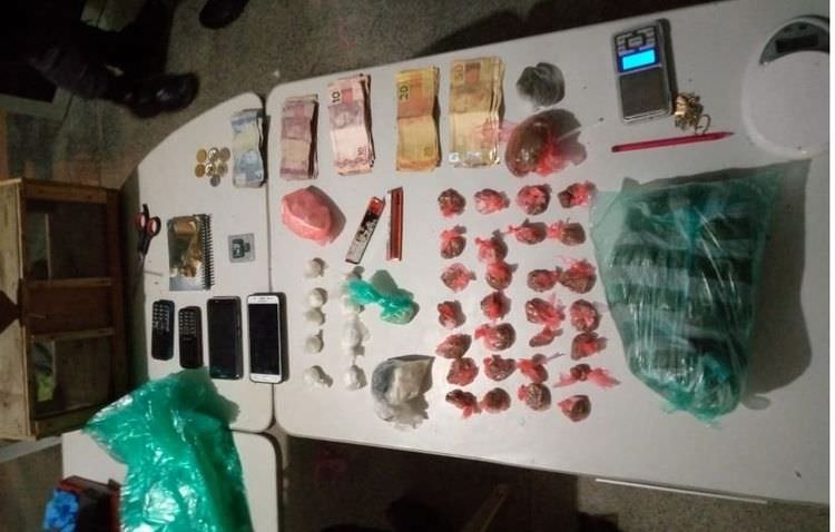 Na casa, a equipe policial localizou mais porções das mesmas drogas, duas balanças de precisão e diversos produtos para a confecção e embalagem, a quantia de R$ 515 e uma cobra jiboia criada em cativeiro.