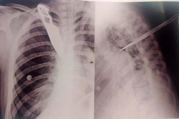 Mulher tem faca cravada nas costas por ex-namorado no interior