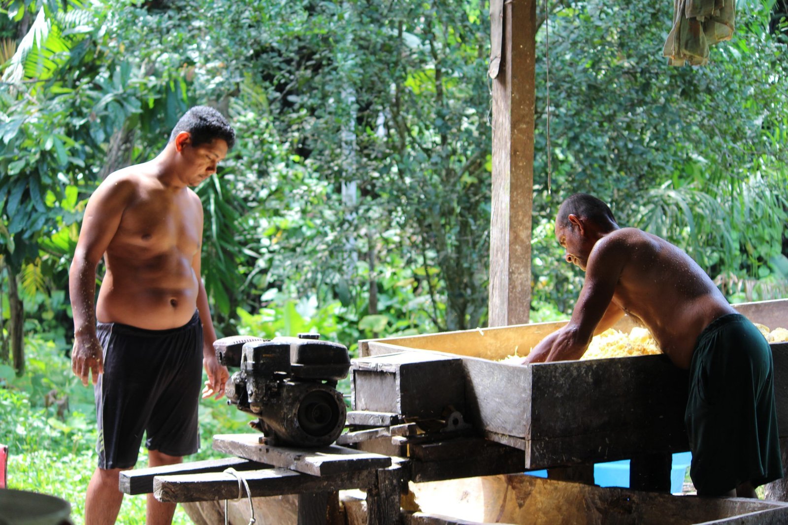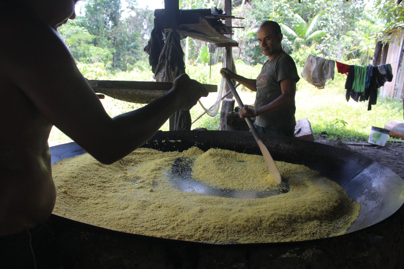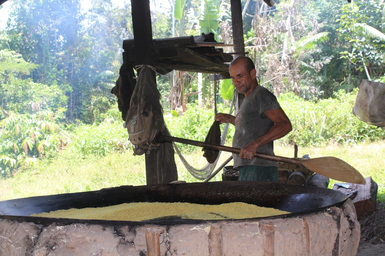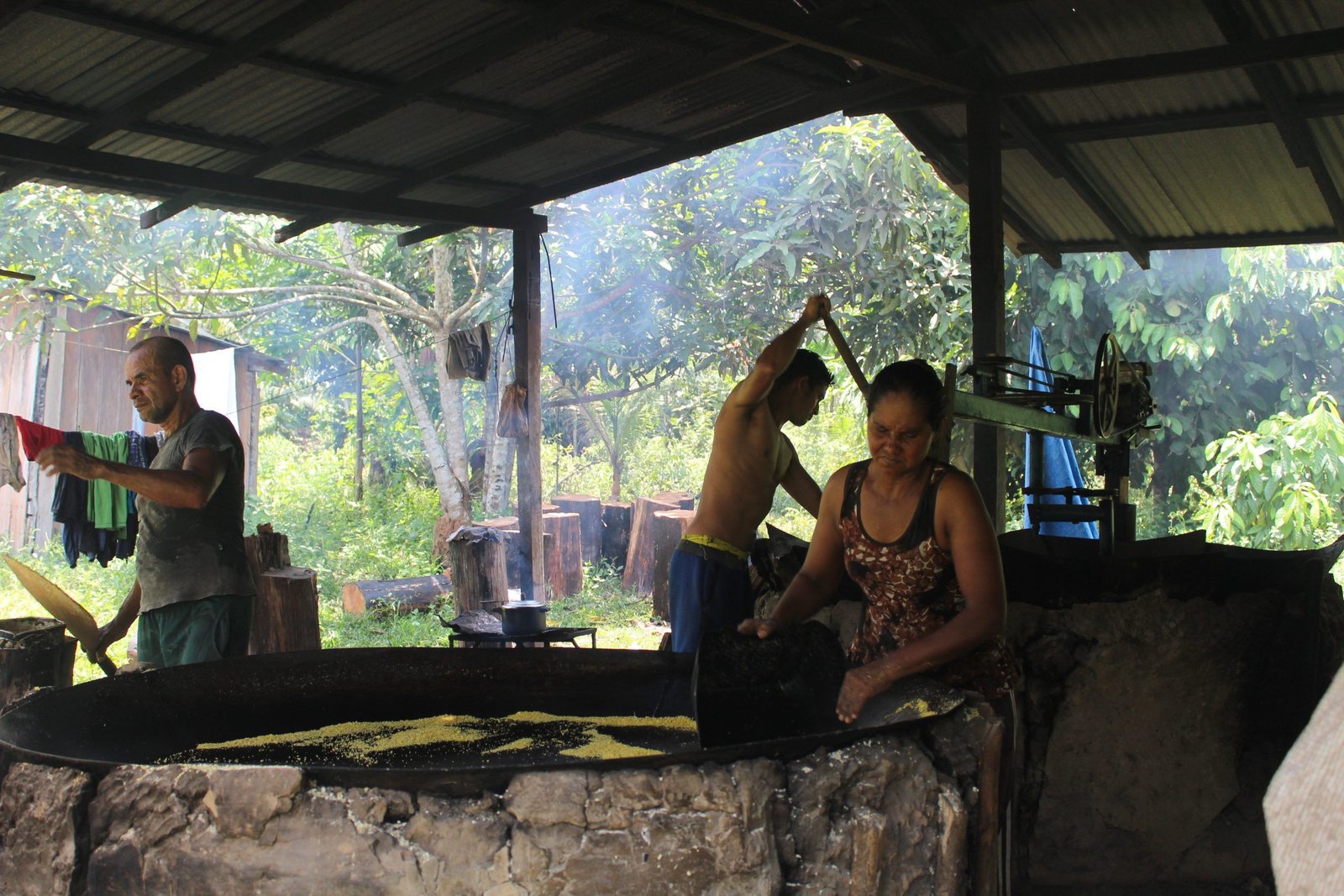 Os produtores rurais de Tefé acordam cedo para produzirem a farinha, porque muitos sítios (terreno onde está localizada a casa de farinha) são longes para se deslocar. É o caso da agricultora, Eliane Carvalho, 39 anos, que passa aproximadamente 15 minutos remando, e 1h caminhando até a casa de farinha.