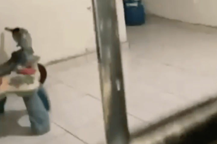 O homem que pega o bebê no colo afirma que o paradeiro da mãe é na farra. “Sozinho ai, ó. A mãe abandonou pra ir para a festa”, diz o homem.
