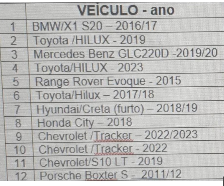 Segue a listagem com os veículos apreendidos até o momento: