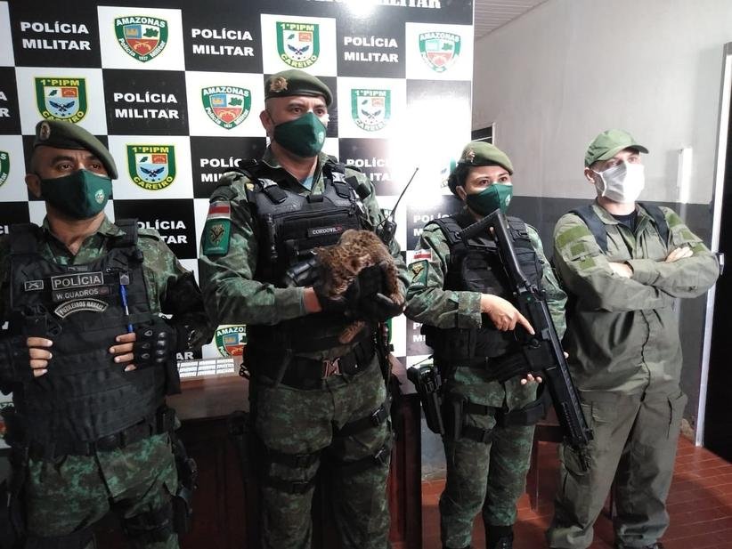Equipes do 1º Pelotão Independente de Polícia Militar (PIPM) e do Batalhão de Policiamento Ambiental (BPAMB) atuaram no resgate de um filhote de onça na tarde de quarta-feira (08), no Careiro Castanho.
