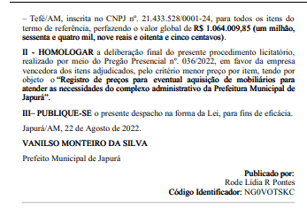 A informação foi divulgada na manhã desta segunda-feira, 29, no Diário Oficial da Associação Amazonense de Municípios (AAM). A homologação tem a assinatura eletrônica do prefeito.
