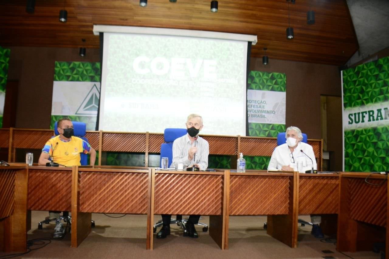 Durante reunião com secretários municipais, o superintendente da Suframa e respectivas equipes técnicas, foram apresentadas as propostas do Truck Park BR-319; da praça e do museu da Indústria; da arena de Robótica; e a reurbanização do Distrito Industrial, incluindo um parque linear temático.