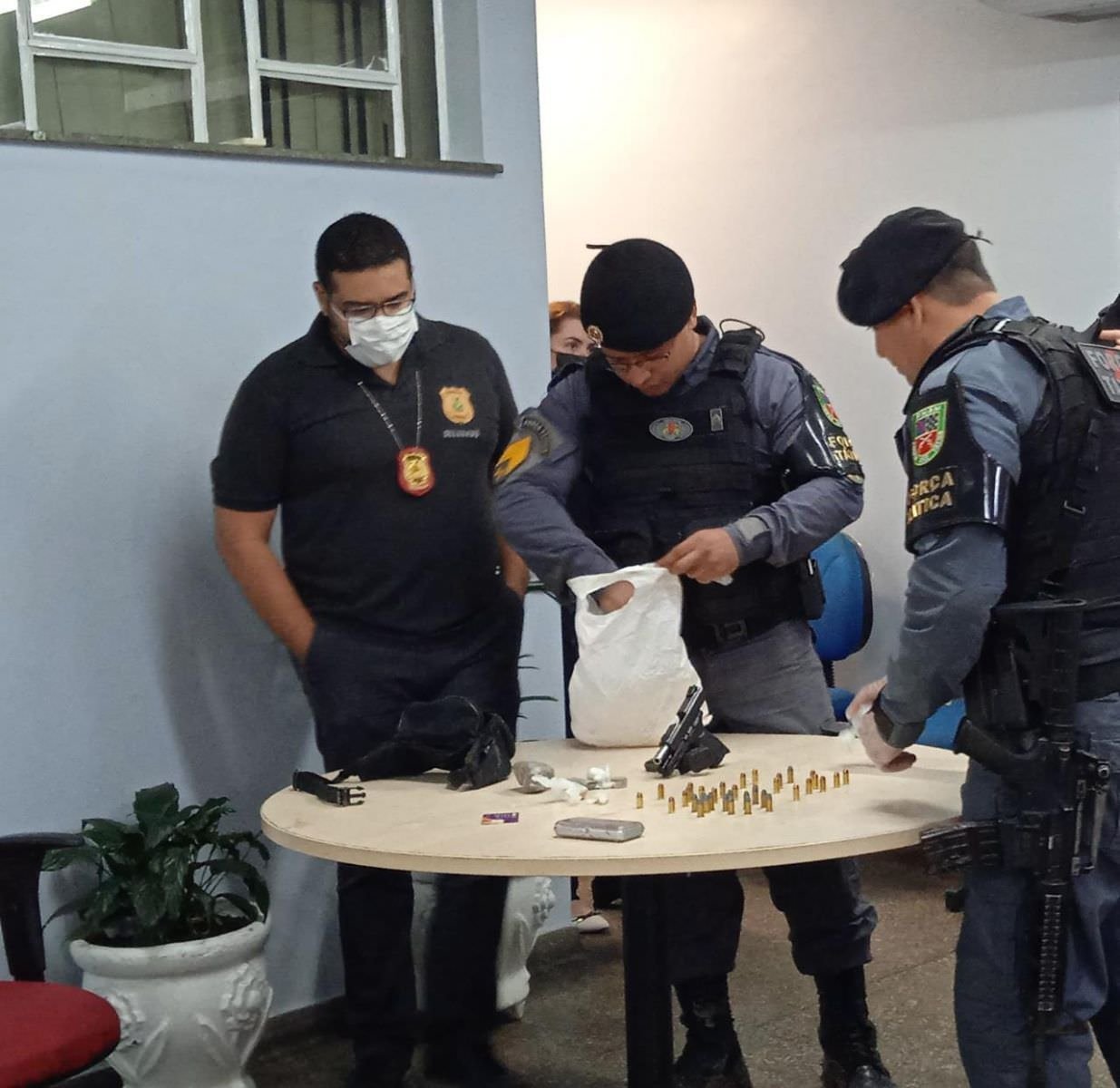 Já a vítima também foi socorrida para o hospital onde recebeu atendimento médico, e, posteriormente será encaminhada para prestar depoimento na delegacia. A polícia ainda apreendeu duas armas, sendo 1 revólver calibre 38 e 1 pistola 380.