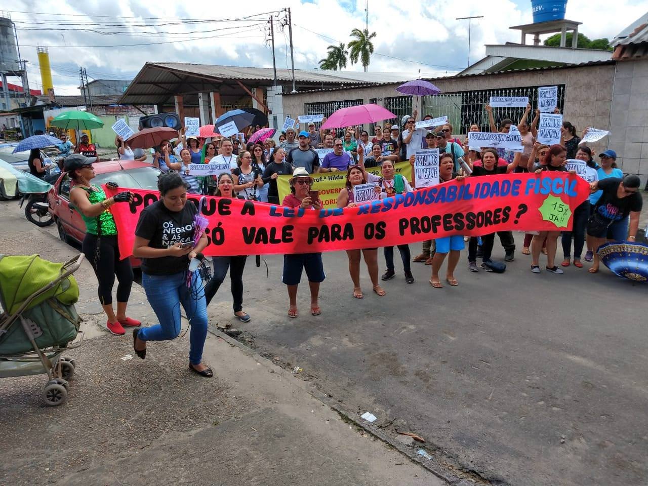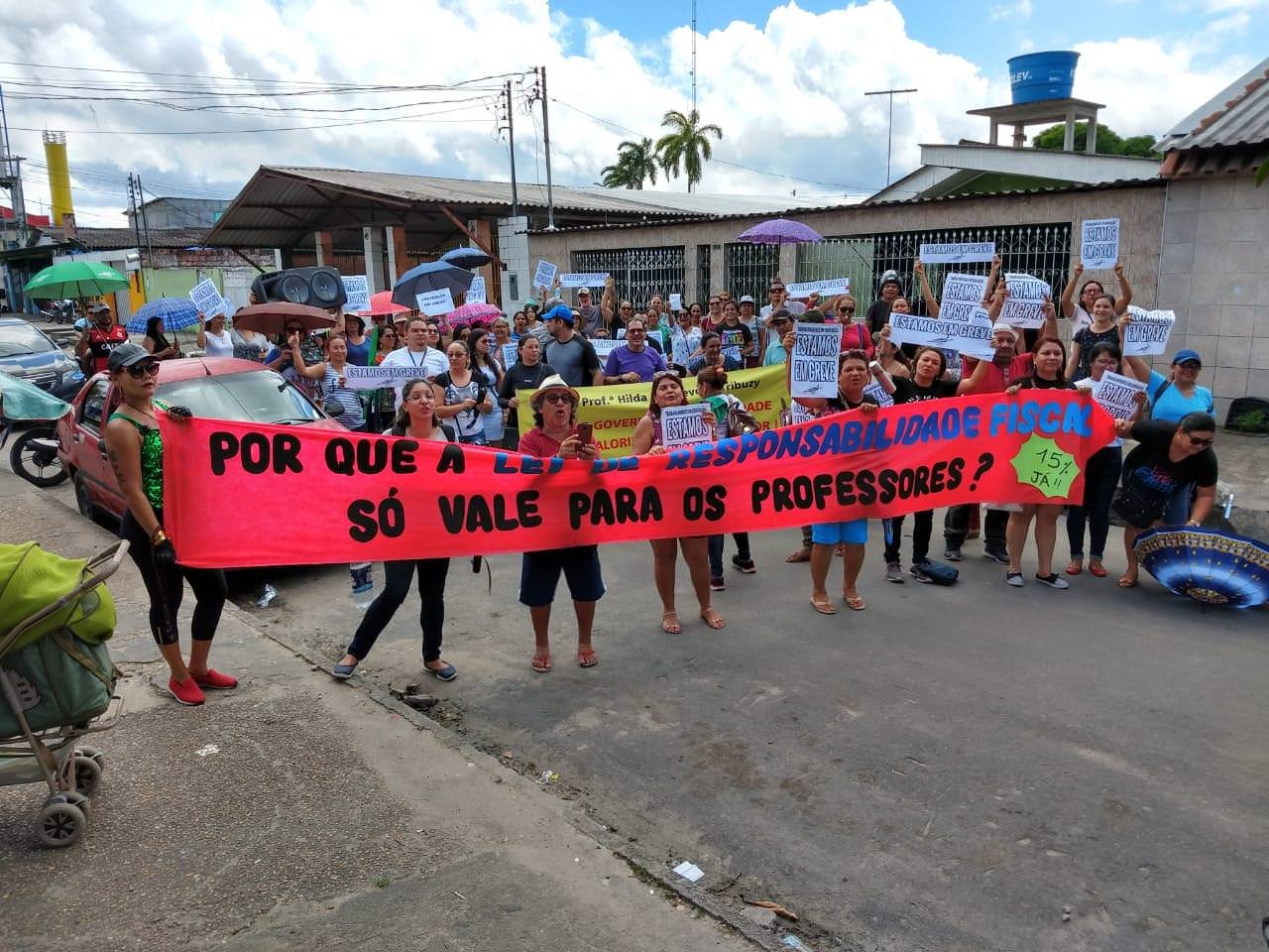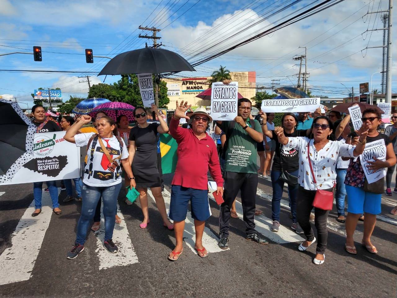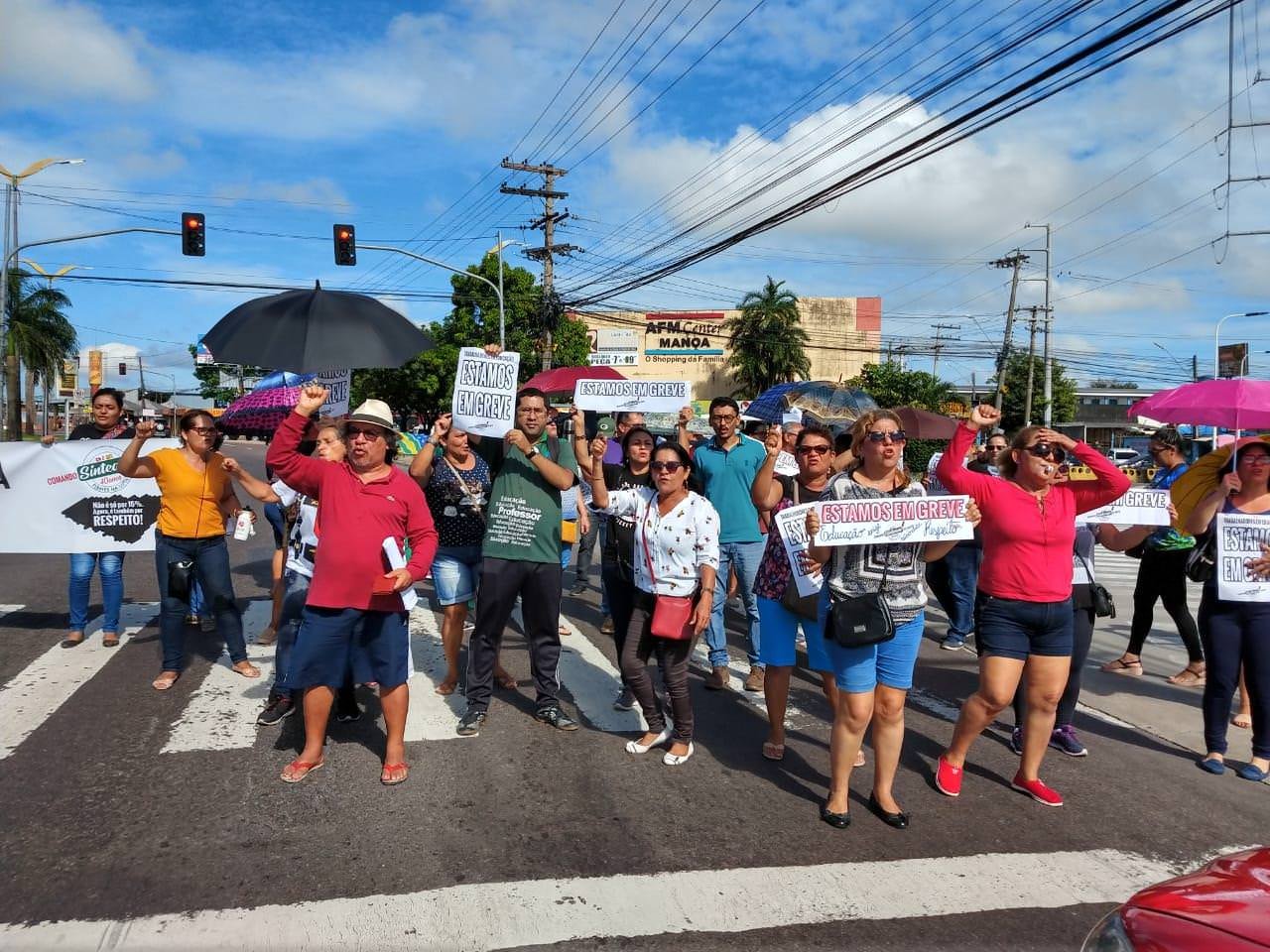 Na manhã desta quinta-feira (25), o comando de greve Unificado da Zona Norte dos trabalhadores da Educação do Estado do Amazonas fizeram uma manifestação na estrada do Manoa.