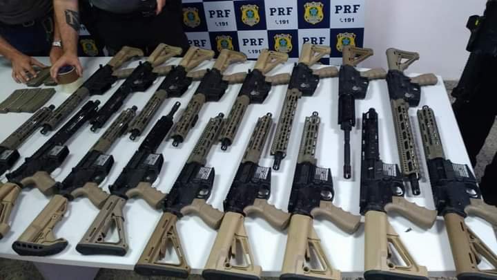 Ao revistar o veículo, os policiais encontraram 17 fuzis AR-15, dois fuzis AK-47, 41 pistolas de vários calibres, 82 carregadores de pistola, 39 carregadores de fuzil, 54 tabletes de pasta base de cocaína e munição ainda não contabilizada. As informações são da Delegacia Especializada em Armas, Munições e Explosivos (Desarme).
