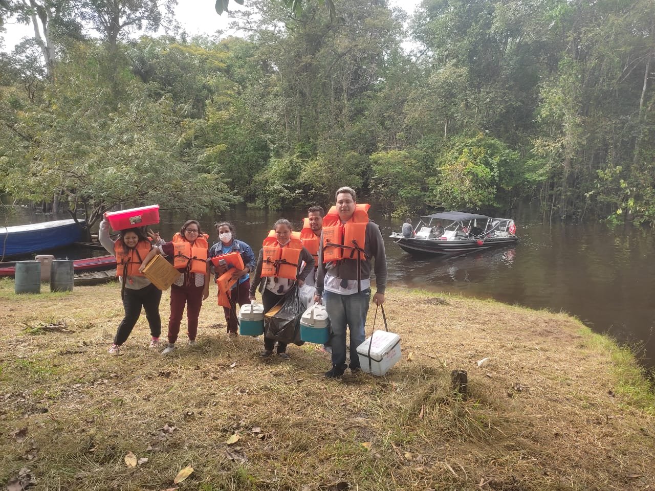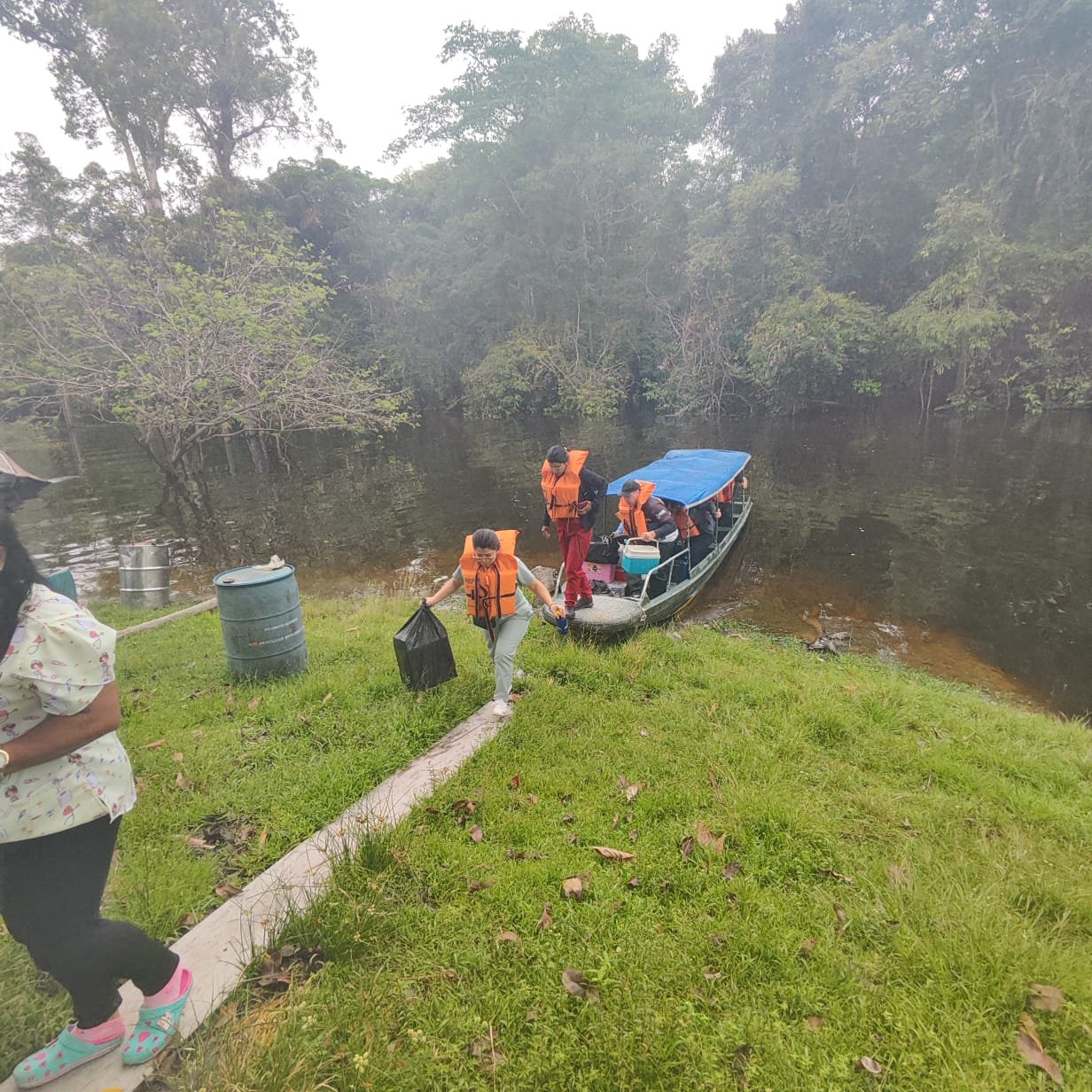 “Levamos equipamentos e medicamentos, somente, a minha bolsa pesa mais de 10 kg. Atolamos, entra lama dentro das botas. Quando caminhamos fica lama até no joelho. Atravessamos o rio a pé. Andamos na mata, porque a lancha não chega até as aldeias. Tudo para poder acessar as comunidades. Mas, toda dificuldade é relacionada à logística por conta da seca”, disse o médico.
