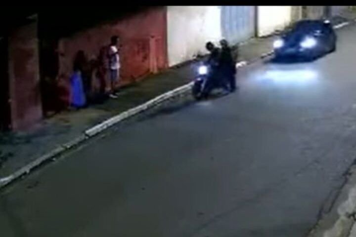 Uma câmera de monitoramento registrou dois rapazes e uma mulher, com idades entre 17 e 20 anos, caminhando por uma calçada no bairro Jardim Oriental. Ambos iam para a casa do tio, que os esperava observando a rua.