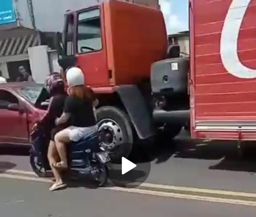 Um caminhão da Coca-Cola atingiu de frente um carro no bairro Oswaldo Frota, em Manaus, na tarde deste domingo, 26.