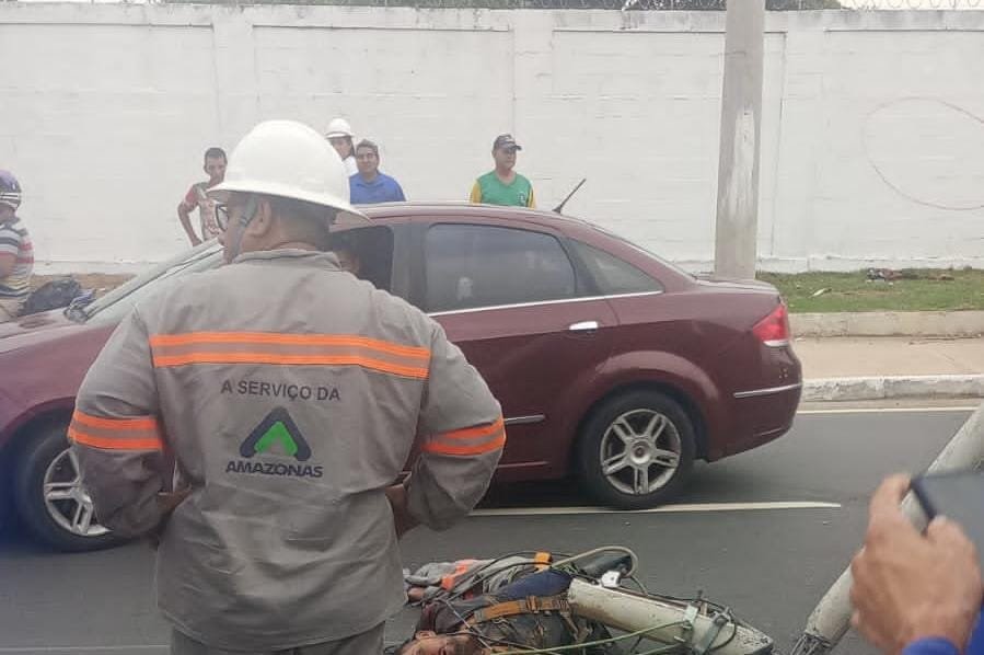 Um caminhão perdeu o controle e atropelou dois trabalhadores da Amazonas Energia que faziam manutenção na rede elétrica na tarde desta quarta-feira, 17.