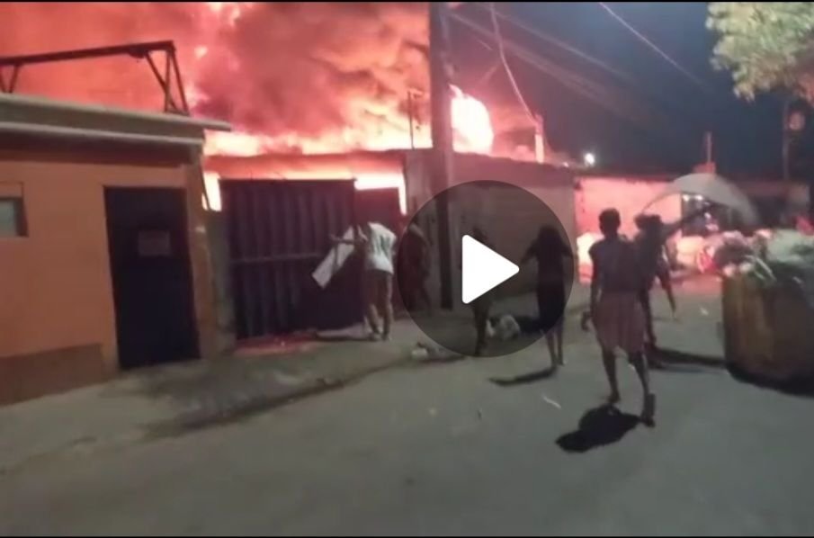 Um incêndio de grande proporção atingiu um depósito de reciclagem, localizado no igarapé do passarinho, zona Norte de Manaus, na noite desta quarta-feira, 14.