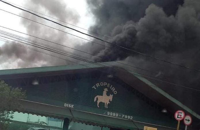 Um incêndio de grande proporções com muita fumaça preta encobriu a churrascaria Tropeiro, na tarde desta quarta-feira, 27.