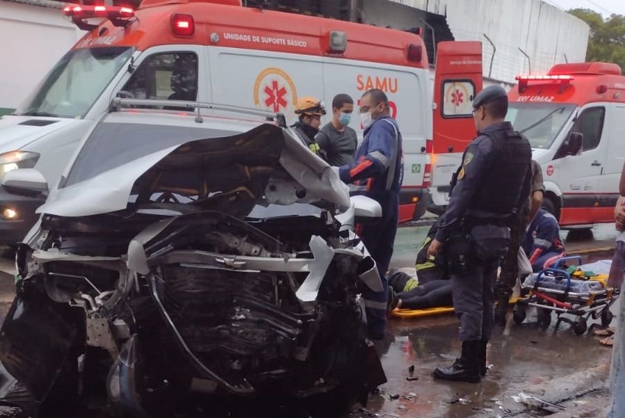 “Trata-se de uma colisão entre dois veículos de passeio. Uma vitima estava retida em um dos veículos com os membros inferiores presos nas ferragens”, disse.