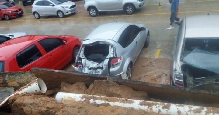 Urgente: muro do estacionamento da Fametro cai em cima dos carros; veja vídeo