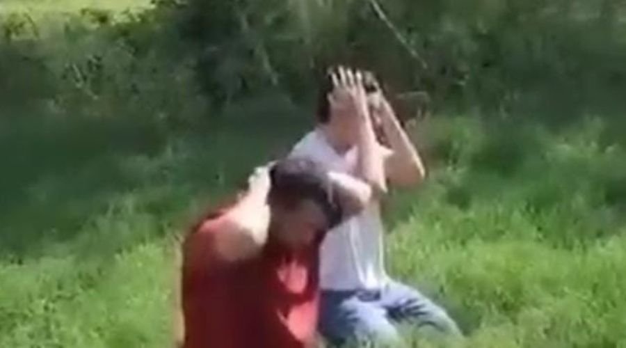 Nas imagens é possível observar que ambos ficam de joelhos, enquanto os assassinos se preparam para meter bala nos dois.