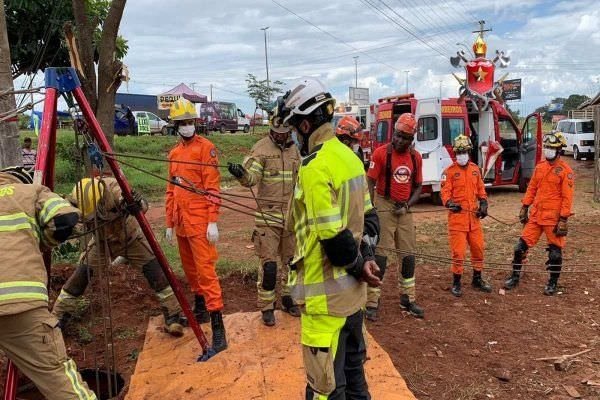 Um homem de 67 anos precisou ser resgatado pelo Corpo de Bombeiros Militar do Distrito Federal (CBMDF) após cair em um buraco com 20 metros de profundidade na cidade de Santa Maria, em um lote em frente à DF-290. O caso ocorreu por volta das 13h desta sexta-feira (21/1), quando João Batista pisou na tampa de cimento que cobria a cisterna do local.