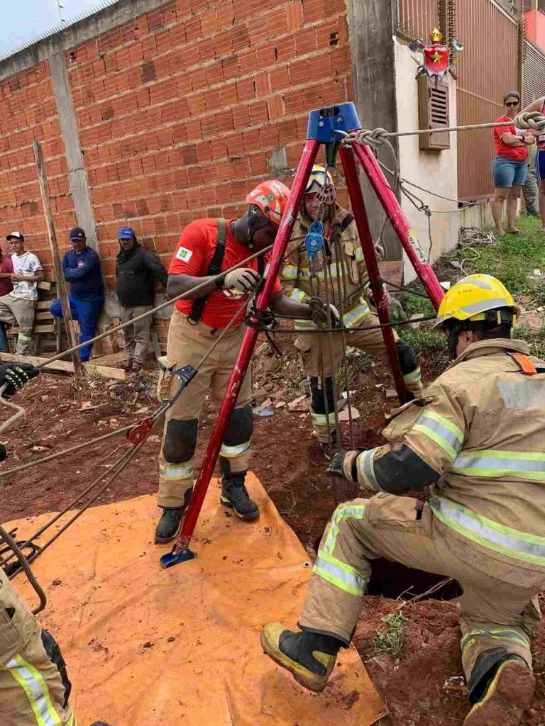 Segundo os militares, as equipes decidiram por uma retirada rápida do idoso – que estava responsivo e consciente –, em razão da forte chuva no local e da possibilidade de desabamento das extremidades do buraco.