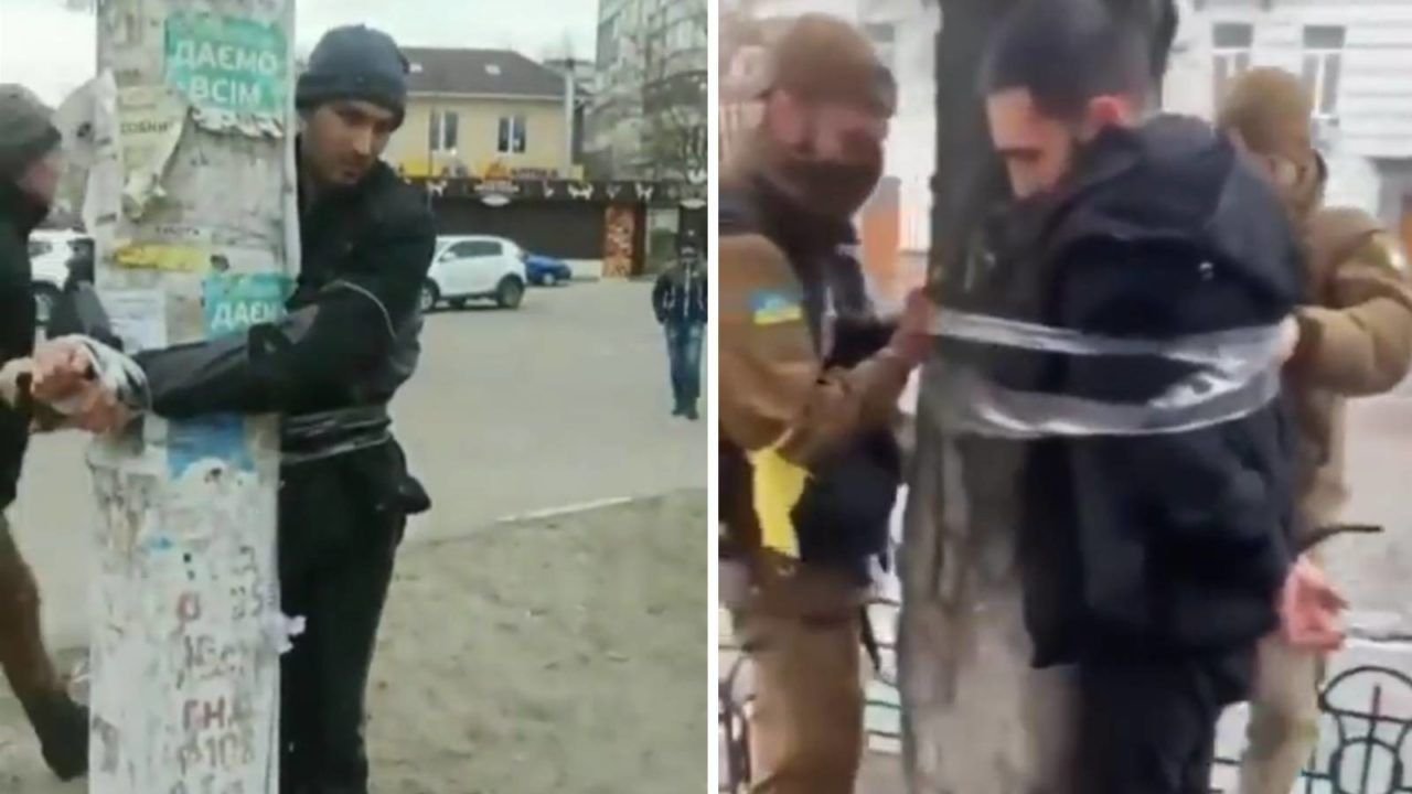 Pessoas acusadas de saquear lojas e estabelecimentos de cidades da Ucrânia durante o avanço das tropas russas no país estão sendo amarradas em postes. Alguns, inclusive, têm suas calças retiradas. Nas redes sociais, vídeos mostrando ladrões amarrados em postes foram compartilhados. As informações são do jornal Daily Mail.