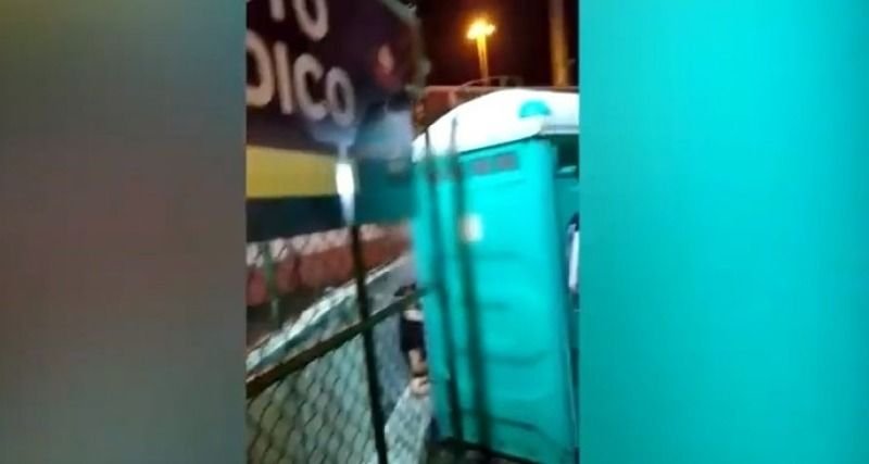 Em imagens enviadas ao site, é possível ver o casal estava em beco atrás de banheiros químicos quando seguranças perceberam a movimentação.
