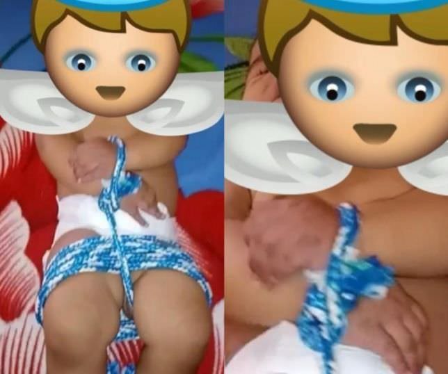 Uma mãe não identificada pela Polícia, amarra mãos e pés de bebê para ela parar de ‘reinar’. E, rindo, ainda chama a criança de ‘ratazana’. Tudo foi filmado,